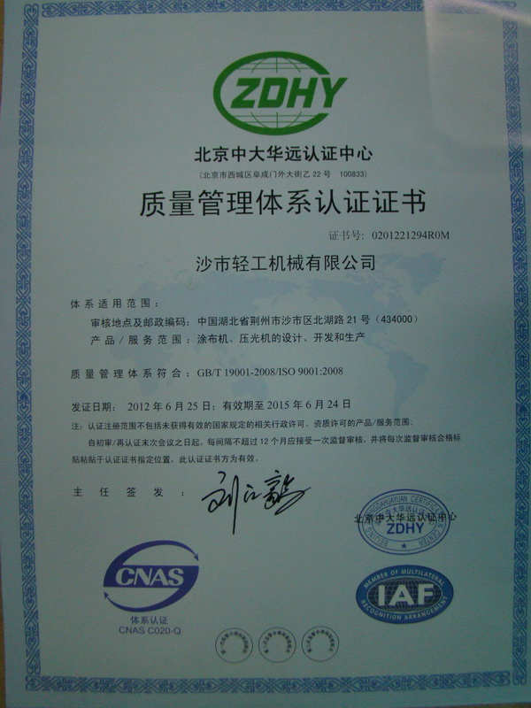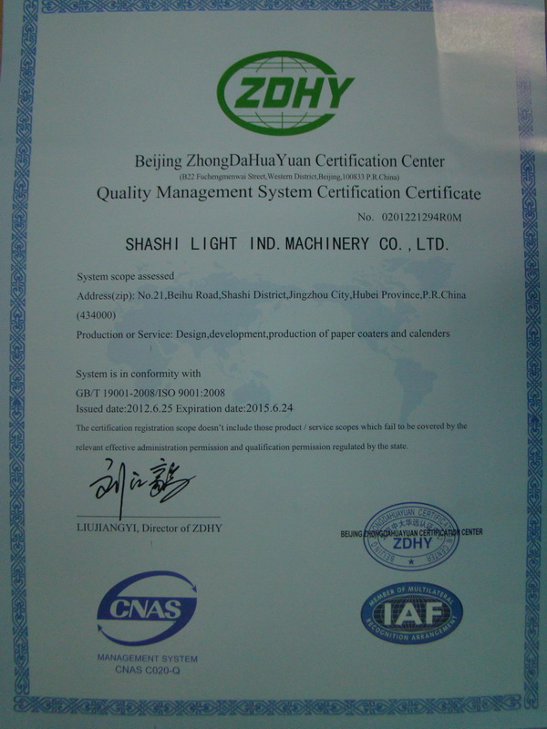IM体育官方网站主要生产经营各类中高档涂布及整饰设备,于1998年6月在全国造纸机械行业率先通过了ISO9001国际质量体系认证(2012年6月通过了ISO9001:2008版认证),先后成功实施了国家“双加工程”、“国家火炬计划”重点项目及第三批国债专项、2009年第二批新增中央投资重点产业振兴和技术改造专项。同时,公司还是科技部等四部委联合认定的国家高新技术企业,中国对外贸易经济合作AAA诚信企业、湖北省科技成果推广示范企业、湖北省科技先导型企业、湖北省纳税信用等级A级企业、湖北省科技型中小企业成长路线图计划重点培育企业、湖北省技术创新型试点企业、5S管理全行业样板、全行业节能减排优秀企业、市直重点骨干企业、纳税先进单位,荆州市重要的机电产品出口企业,拥有自营进出口权和省级企业技术中心。