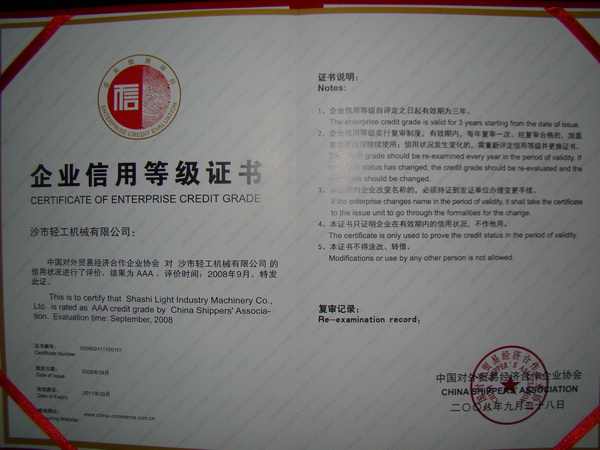 • Achievements_Shashi Light Ind. Machinery Co., LTD.