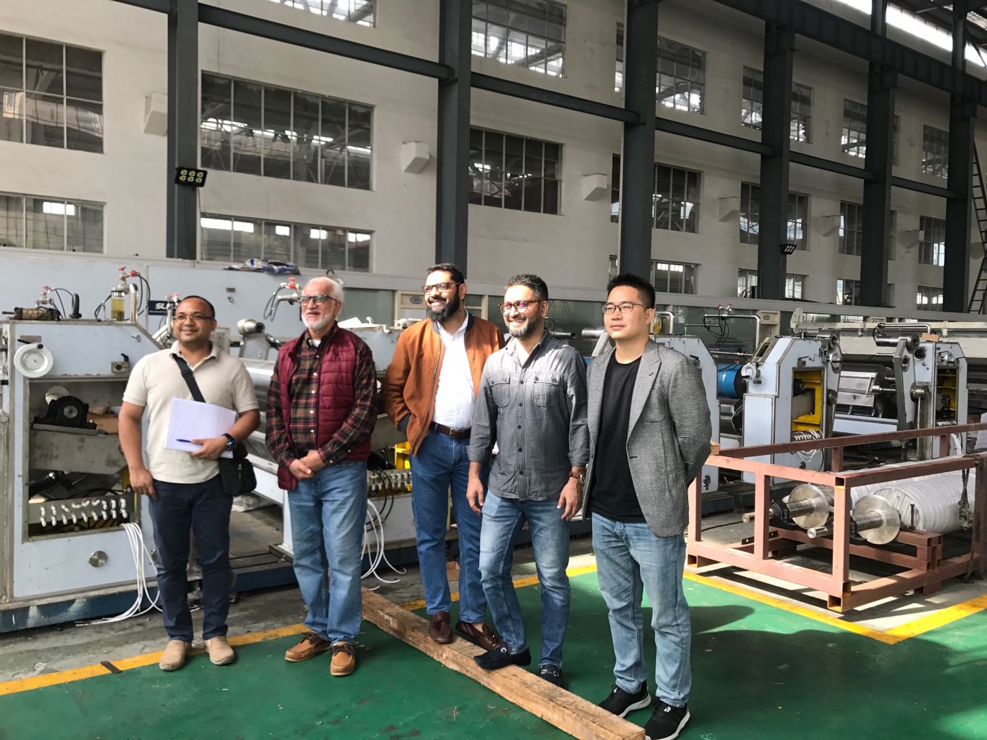 近日,由公司长期合作的广州代理公司牵头,我司迎来一家来自孟加拉的老牌纸厂代表团的考察访问。该纸厂生产主要纸种为双胶纸、书写纸类,此次有意为开发新纸种筹划设备。公司总经理彭宜纯和总工程师张晓磊亲自陪同,参与接待工作。双方在车间和会议室都进行了详细的讲解和沟通,客户对我司的设计能力和加工水平给予了高度的肯定,希望能就涂布机、IM体育官方网站和膜转移施胶机等产品展开进一步合作,尽快促成新项目的落实。