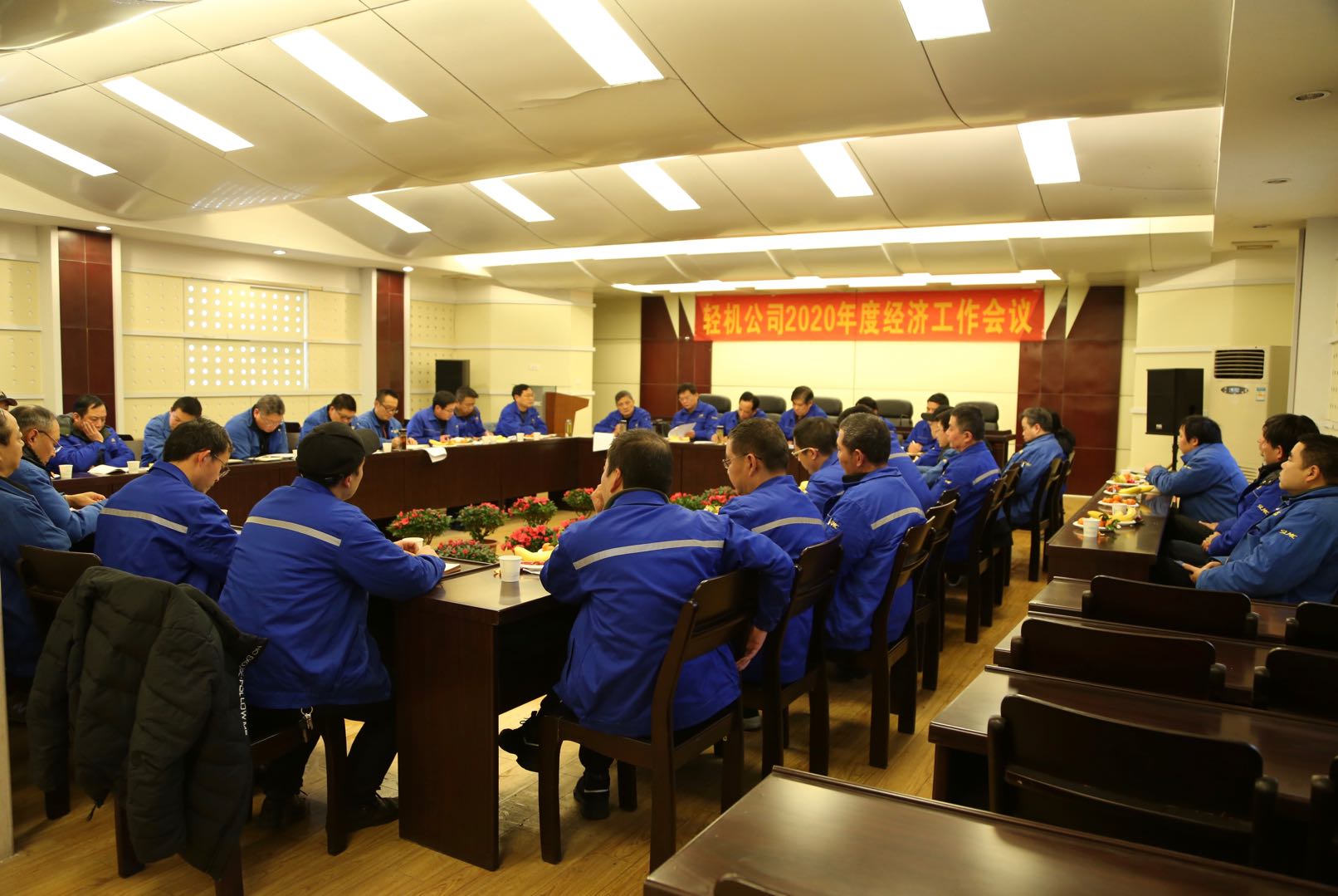 2020年1月7日,公司年度经济工作会议在五楼多功能会议室召开。会议由公司党委副书记郑明波主持,全体中高管、主管、主任工程师、销售经理、生产一线优秀员工代表共38人与会。会议首先由总经理彭宜纯作了2019年工作总结及2020年工作打算报告,随后各部门/车间负责人围绕工作报告重点就2020工作安排和部署作了发言,接着董事王洪飞就各部门、车间2019年度工作考核情况和2020年度考核办法进行了简要说明,最后董事长潘荣敦作总结讲话并提出了具体要求。
